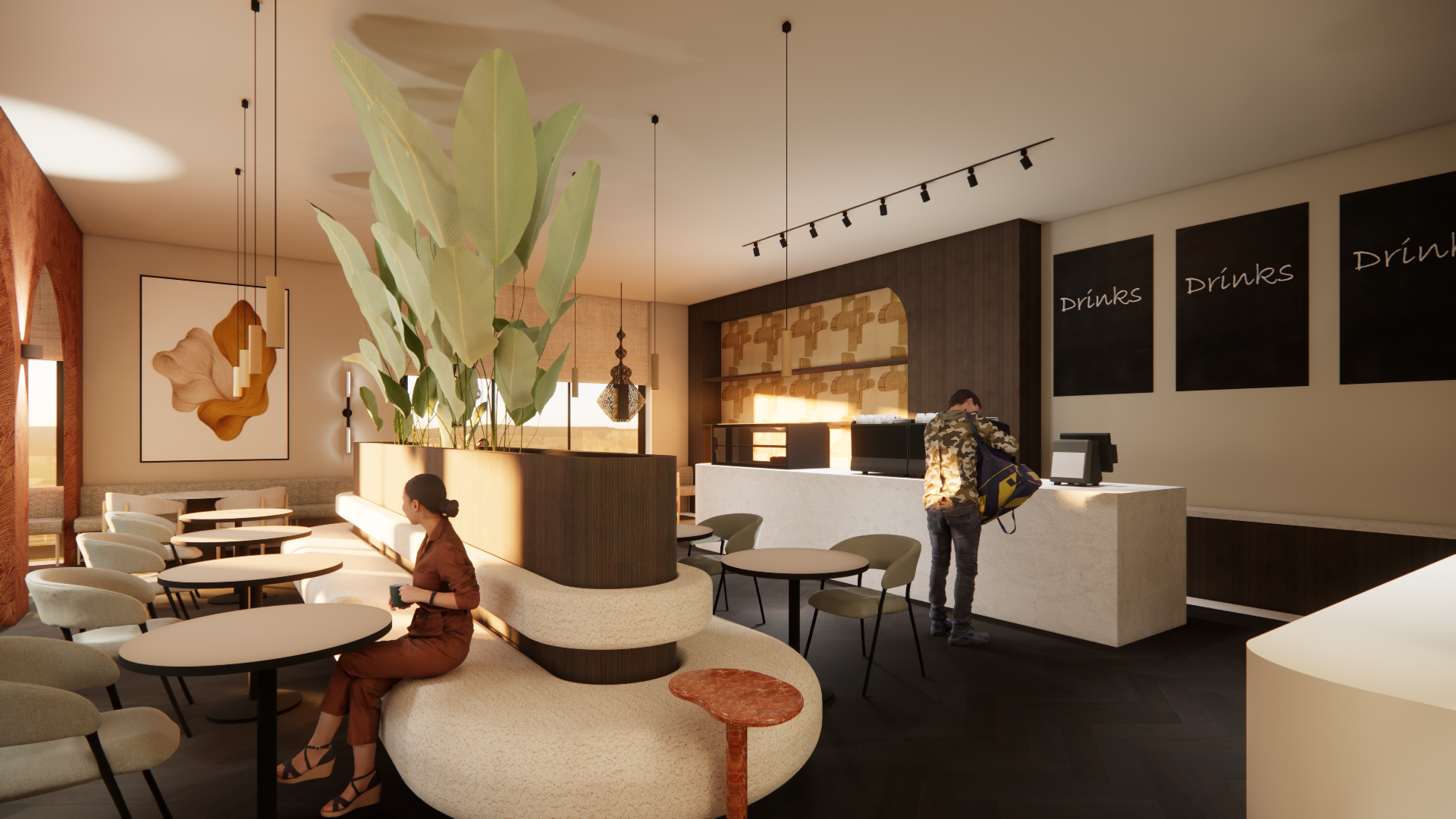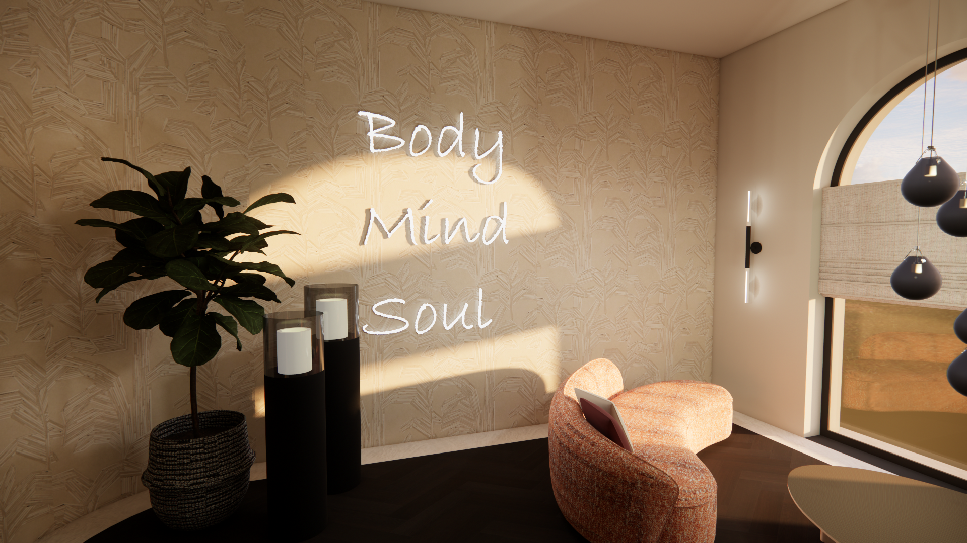 In een voormalige industriepand van ruim 1800m2 heb ik een ontwerp mogen maken gericht op het welzijn van de mensen. Met dit concept komen alle elementen mbt het welzijn & de zorg samen; sportschool, pilateslessen, psycholoog, coaching ruimte, schoonheidsspecialist en aansluitend een horecagedeelte. Zachte, ronde vormen zijn in het ontwerp afgestemd met warme kleuren en een luxe uitstraling.
