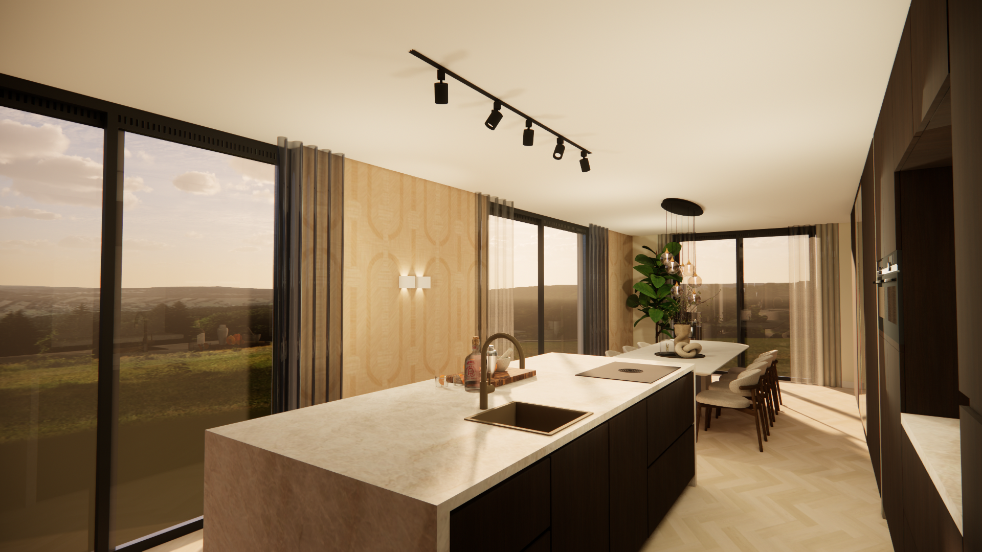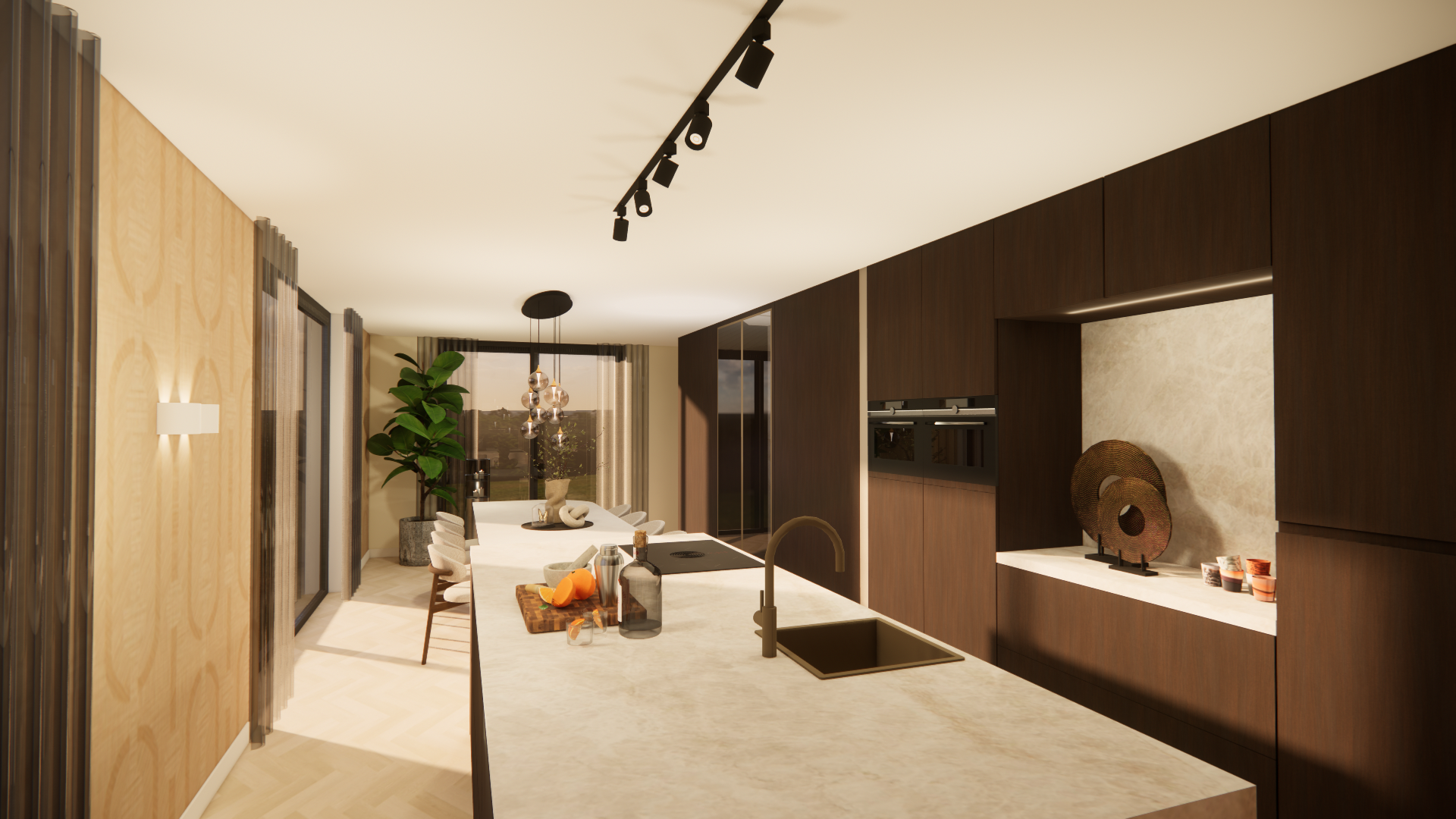 Voor deze nieuwbouwwoning heb ik het complete interieur voor de begane grond mogen ontwerpen. Hierbij hebben we gekeken naar de verbinding tussen de ruimtes, gecombineerd met luxe materialen en een praktische indeling.